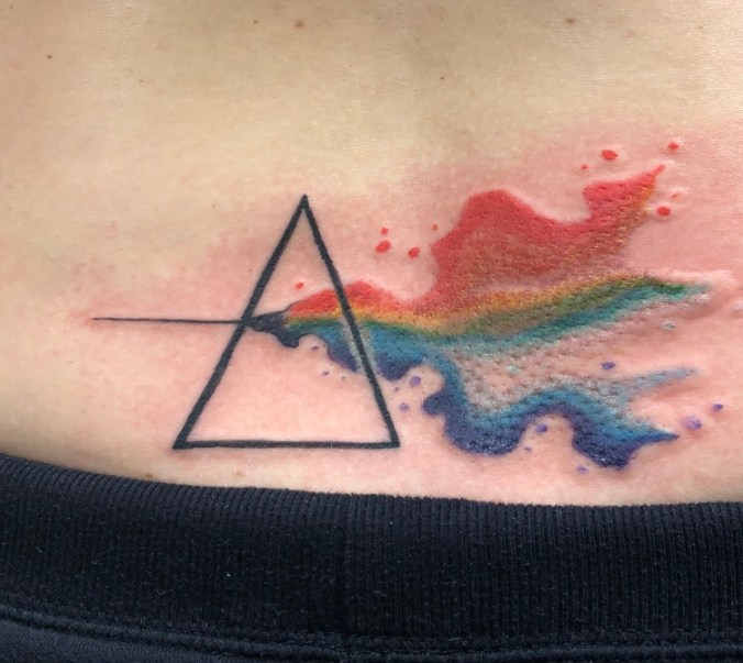 So, I did something today. I got my second tattoo. I decided to get The Dark Side of the Moon tattoo on my lower back. I’ve always been a big fan of Pink Floyd, but it is more than that to me. I like the idea of a prism, where you can take darkness and turn it into brilliant light. To me there is something mysterious, or mystical, in the process. The unknown, the unseen with a little mix of madness.