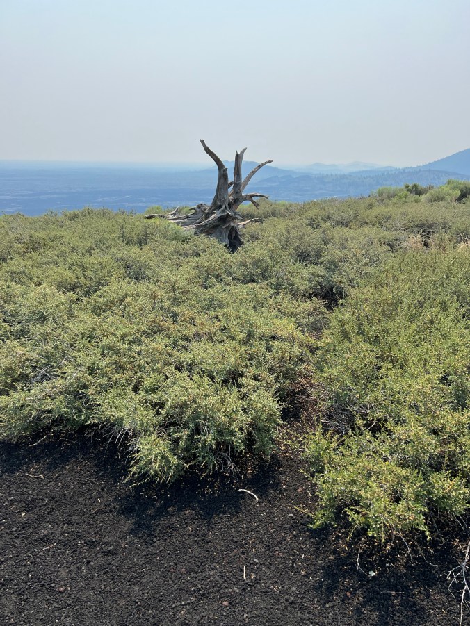 This park was created by a volcano. The craters were mostly black. In most areas it looked like a freshly cultivated muddy field. We hiked up this hill and were surprised to find the picture below on top. This on top of a hill of rocky soil in a dry climate. Made me think of the weeds growing back at home.