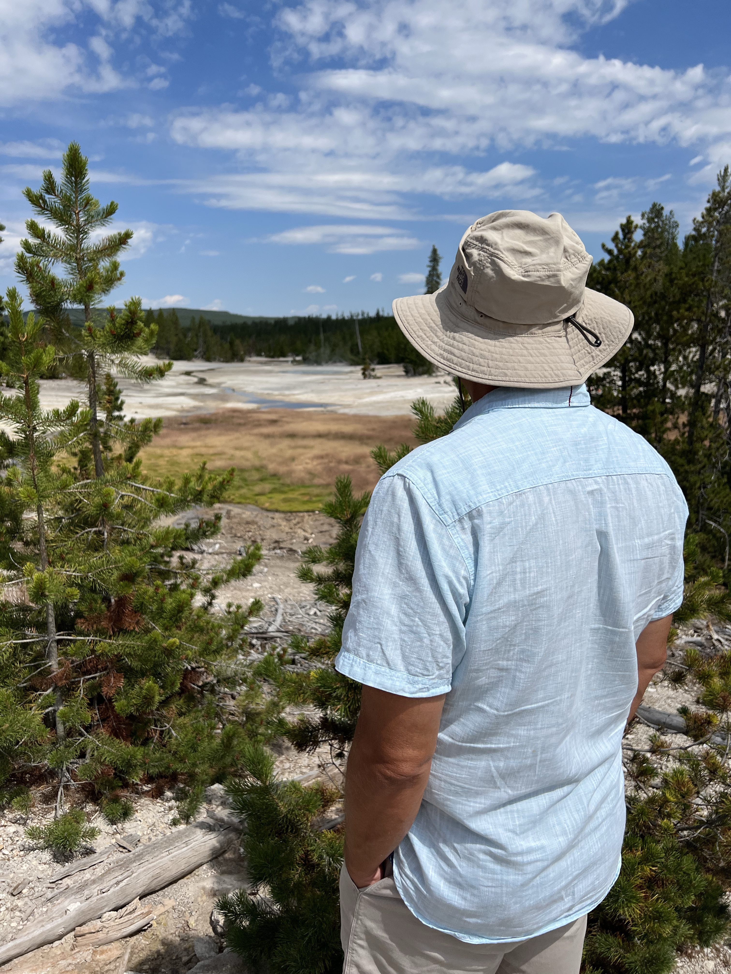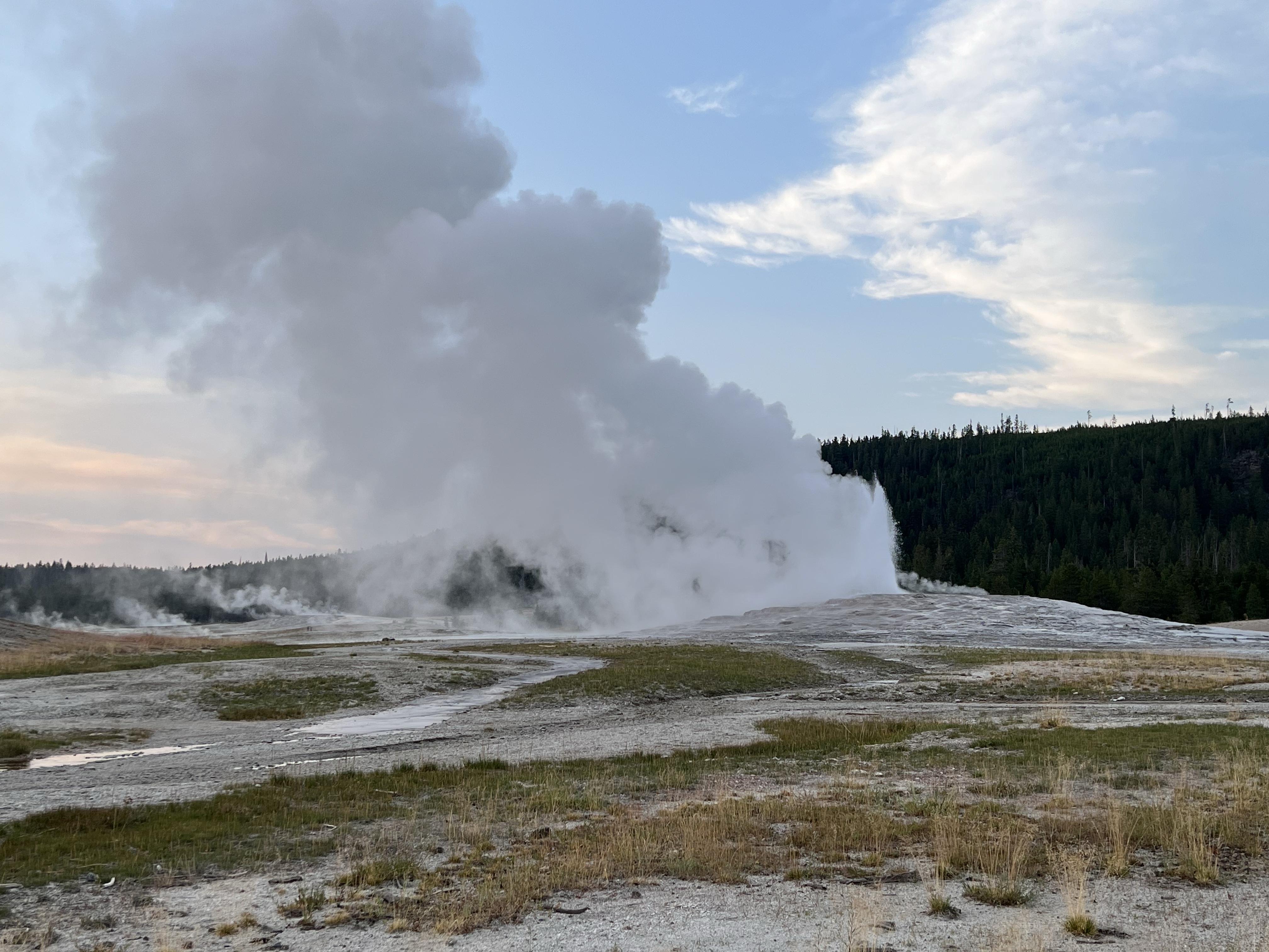 We ended our trip by seeing the Grand Prismatic Spring. It was steamy and nearing nightfall which was not the best time to see the brilliant kaleidoscope of colors. I’m sure it’s amazing to see on a bright sunny day. We were tempted to come back, but decided not to make the drive.