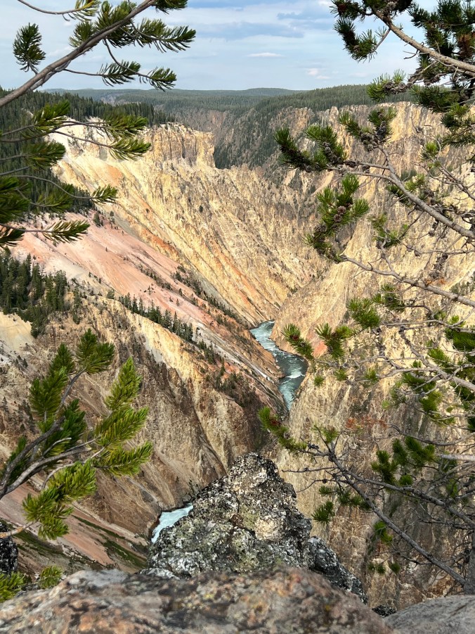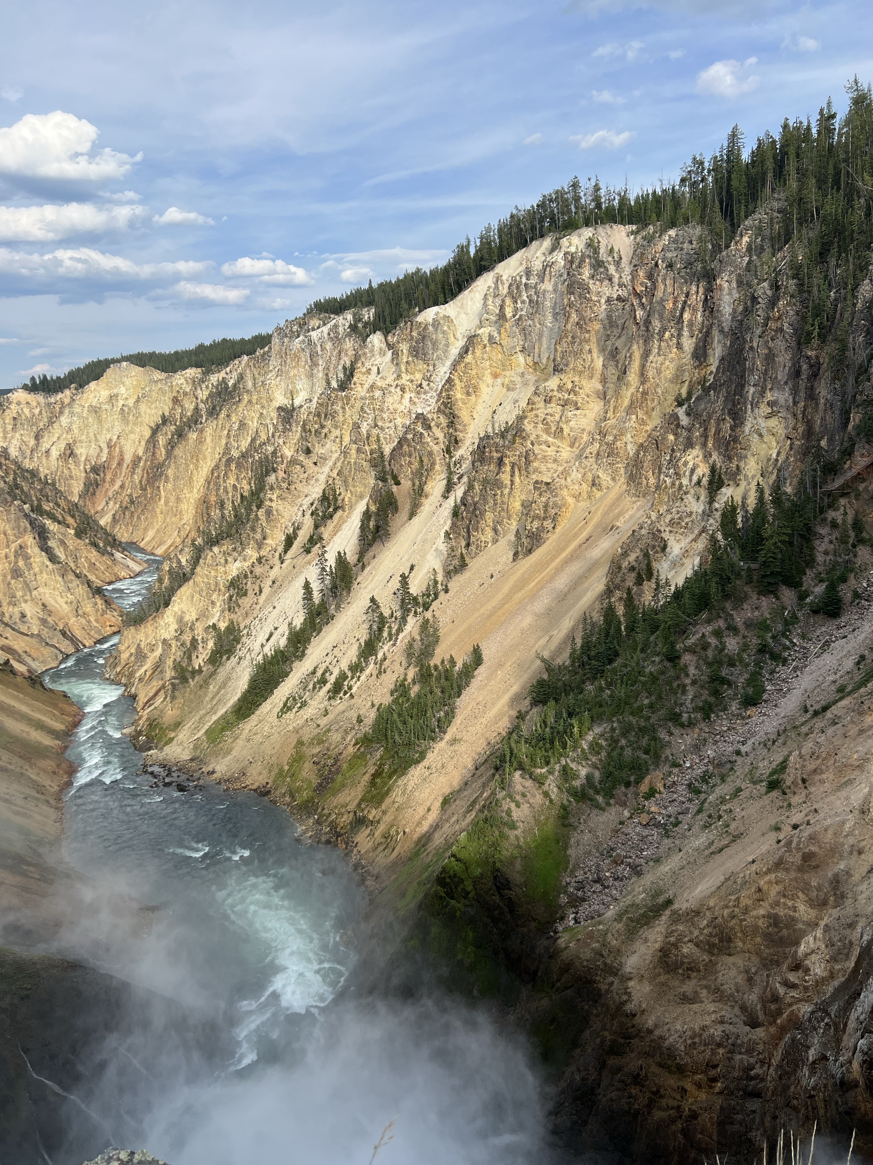 The picture above and below are of the Grand Canyon of Yellowstone. The above picture we walked down a steep descent to see a waterfall going down into the canyon. It was a challenging path. The picture below was taken from the opposite side of the picture above.