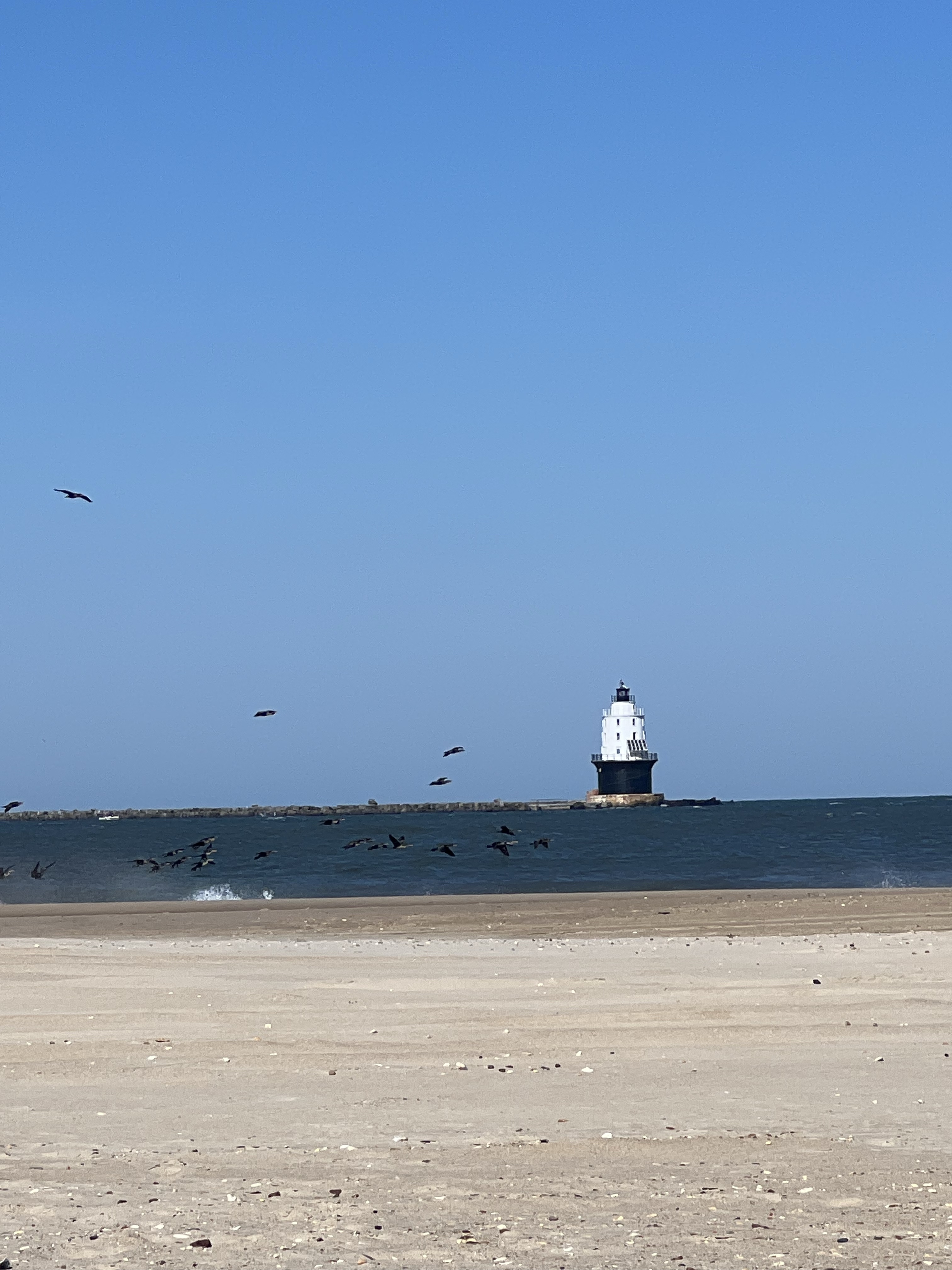 Our last full day we heard it was snowing at home and decided to soak up some sun at the beach. We decided to go to Cape Henlopen State Park. The water temperature was supposed to be the warmest at the cape at a balmy 69 degrees which was pretty close to the air temperature. At the point was where Delaware Bay meets the Atlantic Ocean. At first we walked along the bay. We had the beach to ourselves but the water was very cold. We decided to walk to lunch at Big Oyster Brewery from there which ended up being a long walk. Afterwards we took an Uber back to the cape.