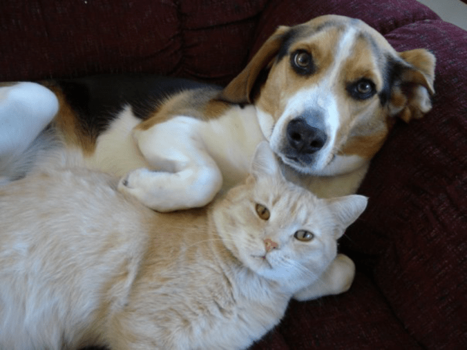 My cat and dog are best friends. I catch them snuggling together, grooming each other, and being playful even now in their old age. Heck, they get along better than my kids!