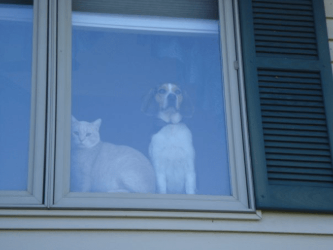 Our first problem on the 4th happened after we went up north for a couple of weekends. We took the dog with us and left our cat at home alone. How can I put this delicately?? Our cat started urinating blood one 4th. I took him into the animal ER. We ended up finding out that he had separation anxiety. He couldn’t handle being home alone, especially when we took his best friend with us. He would cry pitifully after we returned home, sometimes in the middle of the night. Now we try to find a pet sitter so they can be together when we are gone. Or if the dog comes with, I turn the radio on.